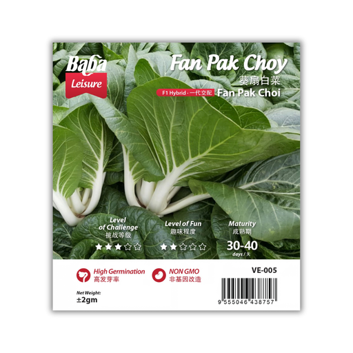 View full detailsItem Code : VE-005 Product Description : F1 Fan Pak Choy Quantity : +/- 2 gm Maturity : 30 – 40 days Seed Sowing Guide1️⃣Spread some seeds on th...