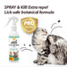 Spray on your pet's body, avoiding the head and eye area, scrubbing back and forth (with bath gloves) to coat along the skin. Let the product completely dry. Apply 2-3 times per week of before a pet goes outside. Spray can also be used in and around the house including the bedding, pet bedding, collars, and rugs to help repel pests. Repeat if necessary.